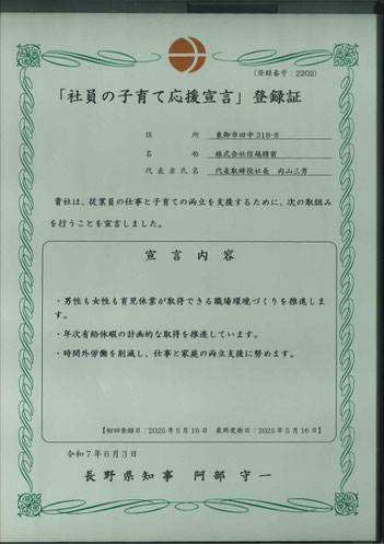 信越精密では『社員の子育て応援宣言』に取り組んでおり